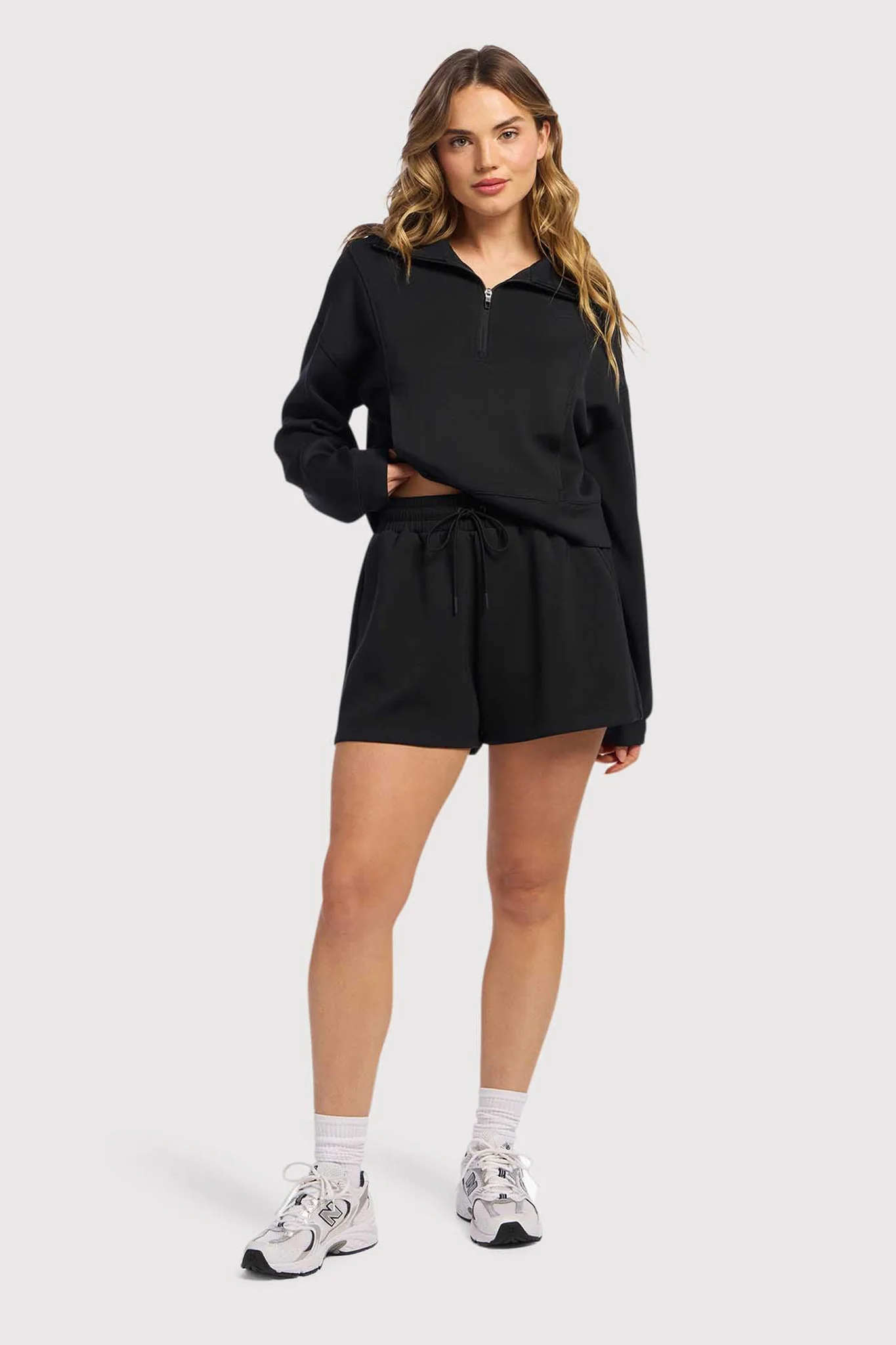 So sporty and slouchy, these soft shorts are made to take you through everyday in comfort and style. With a cooling scuba-like fabric, these loose-fitting shorts feature a drawstring elastic waistband so you can custom fit them just how you like. For a cute and cozy matching set, pair these shorts with our Soft Motion Quarter-Zip.